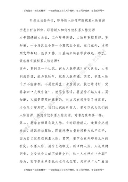 听老主任告诉你,职场新人如何有效积累人脉资源![更多资源请百度搜索“培实素材网”]