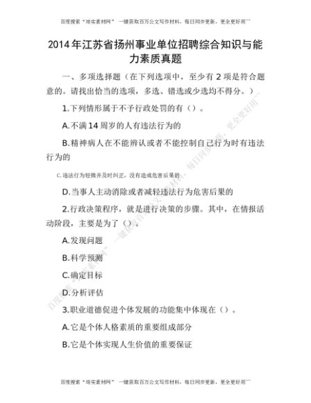 2014年江苏省扬州事业单位招聘综合知识与能力素质真题[更多资源请百度搜索“培实素材网”]