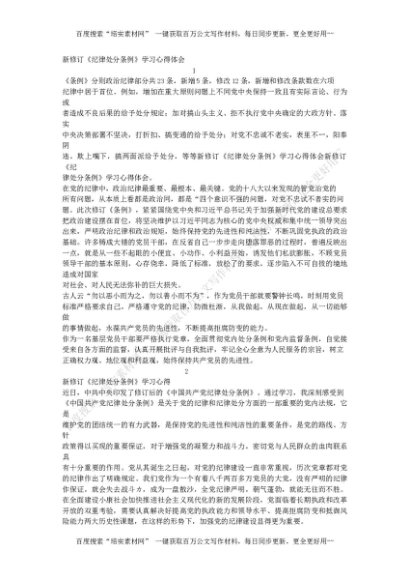 20180911【心得体会类】新修订《纪律处分条例》学习心得(9篇)[更多资源请百度搜索“培实素材网”]
