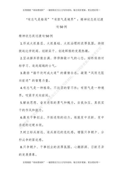 “有志气是格局”“有胆气是境界”:精神状态类过渡句50例[更多资源请百度搜索“培实素材网”]