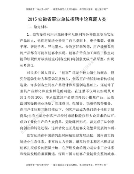 2015安徽省事业单位招聘申论真题A类[更多资源请百度搜索“培实素材网”]