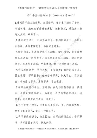 “不”字型排比句40例(XXXX年3月14日)[更多资源请百度搜索“培实素材网”]