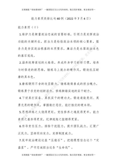 能力素质类排比句40例(2022年7月4日)[更多资源请百度搜索“培实素材网”]