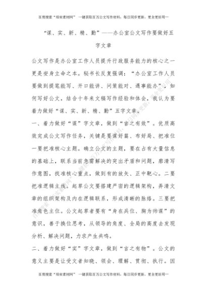 “谋、实、新、精、勤”——办公室公文写作要做好五字文章[更多资源请百度搜索“培实素材网”]