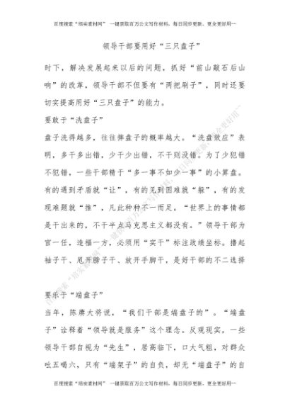 领导干部要用好“三只盘子”[更多资源请百度搜索“培实素材网”]