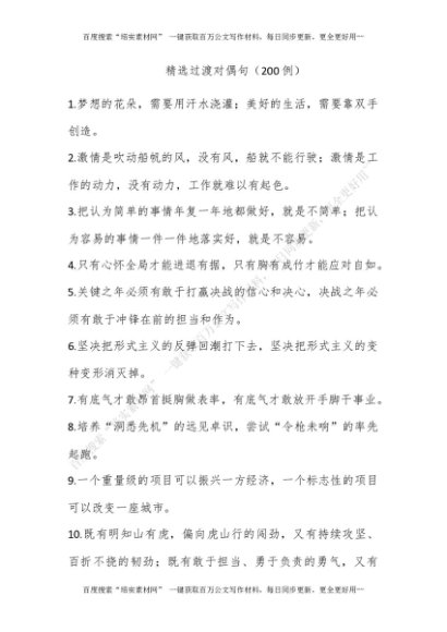 精选过渡对偶句(200例)[更多资源请百度搜索“培实素材网”]