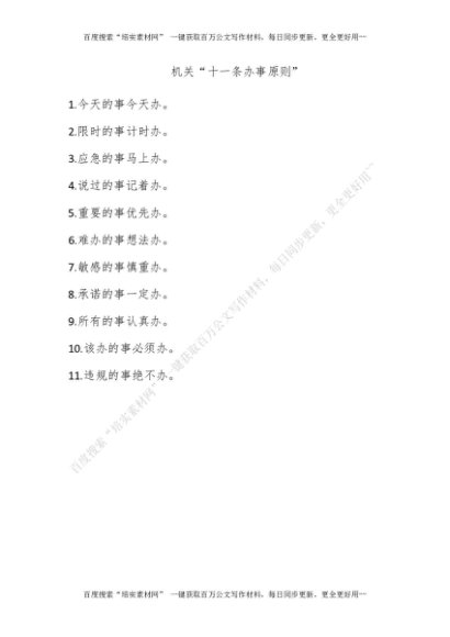 机关“十一条办事原则”[更多资源请百度搜索“培实素材网”]