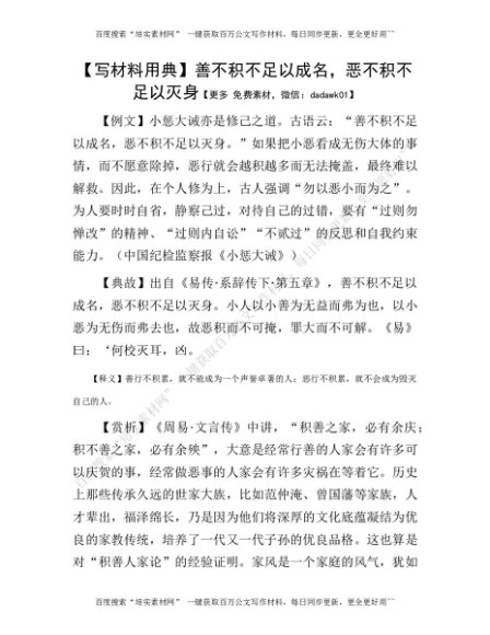 【写材料用典】善不积不足以成名,恶不积不足以灭身[更多资源请百度搜索“培实素材网”]