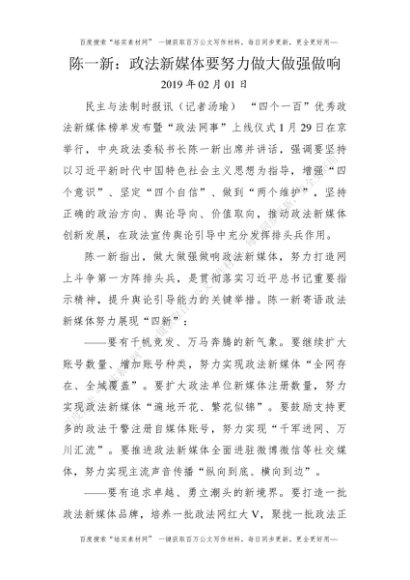 陈一新:政法新媒体要努力做大做强做响[更多资源请百度搜索“培实素材网”]