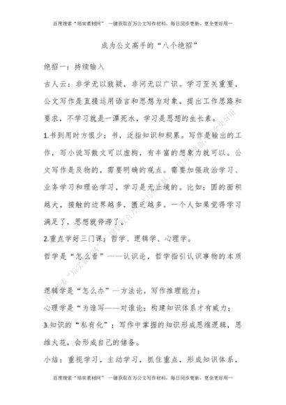 成为公文高手的“八个绝招”[更多资源请百度搜索“培实素材网”]