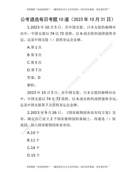 公考遴选每日考题10道(2023年10月31日)[更多资源请百度搜索“培实素材网”]