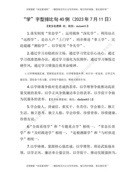 “学”字型排比句40例(2023年7月11日)[更多资源请百度搜索“培实素材网”]