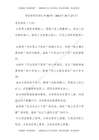 党性修养类排比句40例(2022年10月27日)[更多资源请百度搜索“培实素材网”]