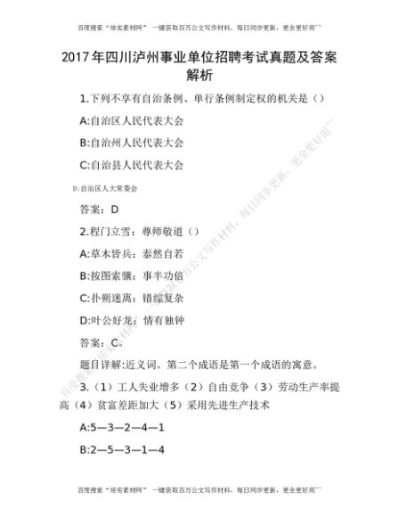 2017年四川泸州事业单位招聘考试真题及答案解析[更多资源请百度搜索“培实素材网”]