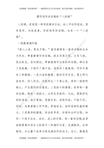 撰写领导讲话稿的“八段锦”[更多资源请百度搜索“培实素材网”]