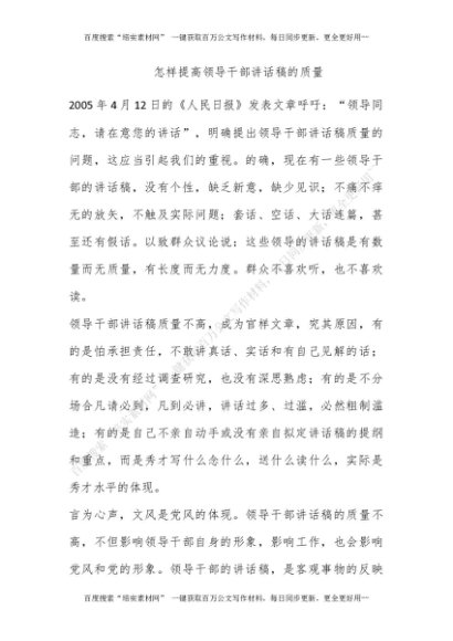 怎样提高领导干部讲话稿的质量[更多资源请百度搜索“培实素材网”]