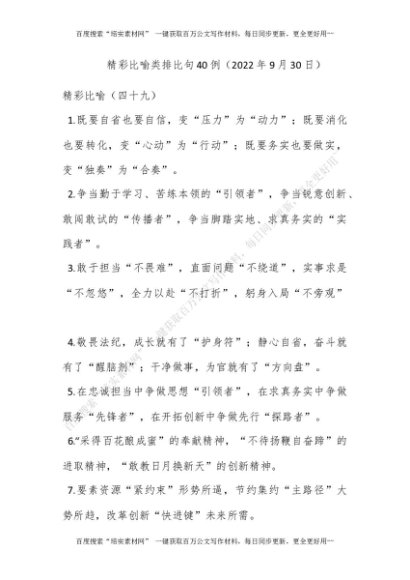 精彩比喻类排比句40例(2022年9月30日)[更多资源请百度搜索“培实素材网”]