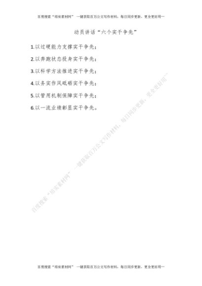 动员讲话“六个实干争先”[更多资源请百度搜索“培实素材网”]
