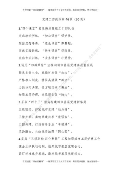 党建工作提纲第46辑(30例)[更多资源请百度搜索“培实素材网”]