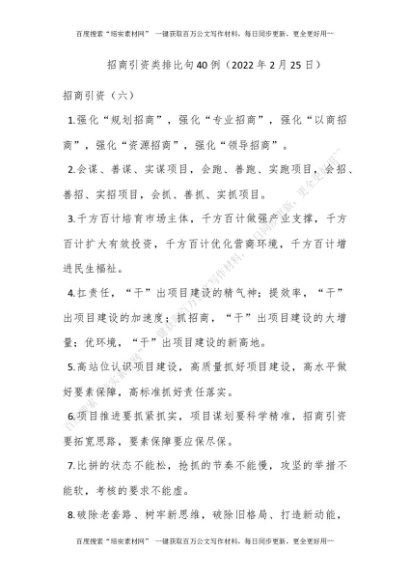 招商引资类排比句40例(2022年2月25日)[更多资源请百度搜索“培实素材网”]