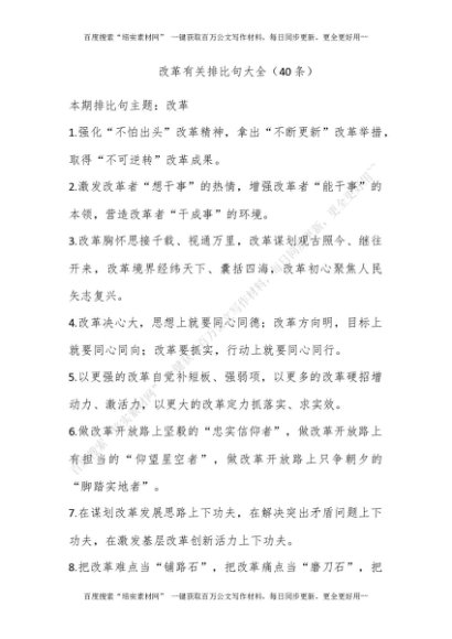 改革有关排比句大全(40条)[更多资源请百度搜索“培实素材网”]
