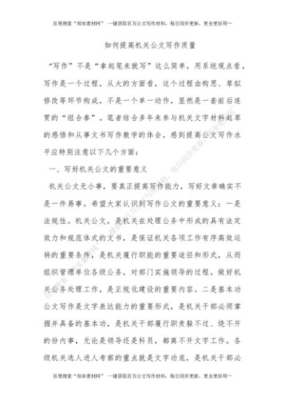 如何提高机关公文写作质量[更多资源请百度搜索“培实素材网”]