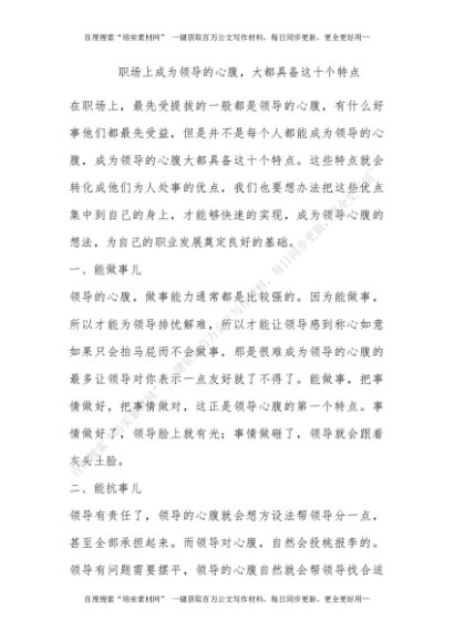 职场上成为领导的心腹,大都具备这十个特点[更多资源请百度搜索“培实素材网”]