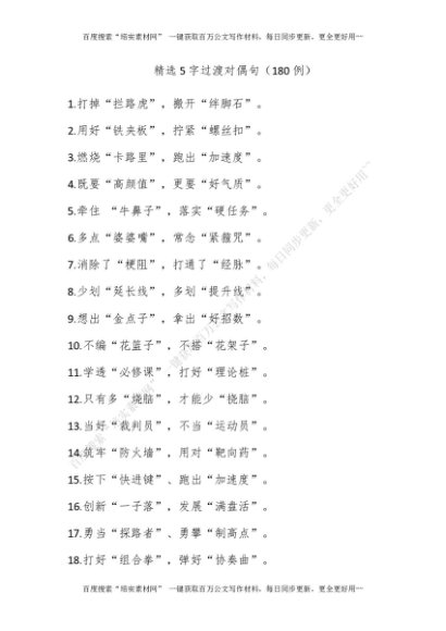精选5字过渡对偶句(180例)[更多资源请百度搜索“培实素材网”]