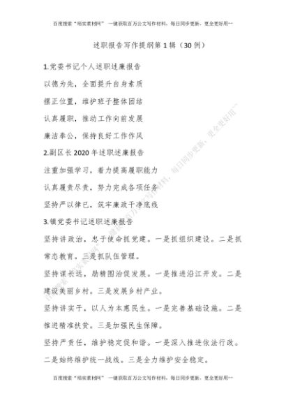 述职报告写作提纲第1辑(30例)[更多资源请百度搜索“培实素材网”]