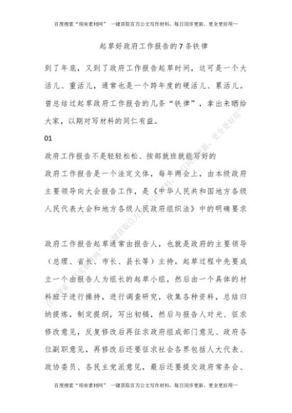 起草好政府工作报告的7条铁律[更多资源请百度搜索“培实素材网”]