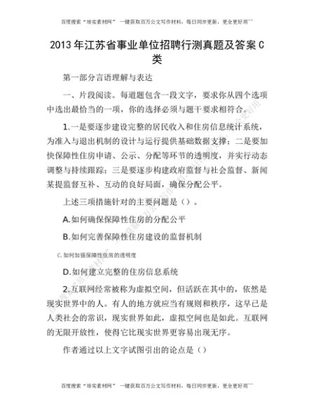 2013年江苏省事业单位招聘行测真题及答案C类[更多资源请百度搜索“培实素材网”]