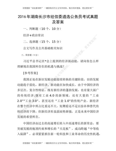 2016年湖南长沙市经信委遴选公务员考试真题及答案[更多资源请百度搜索“培实素材网”]