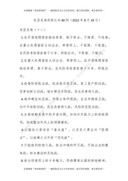 攻坚克难类排比句40例(2022年8月18日)[更多资源请百度搜索“培实素材网”]