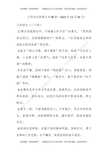 工作状态类排比句40例(2022年12月24日)[更多资源请百度搜索“培实素材网”]