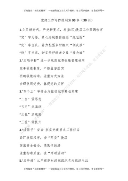 党建工作写作提纲第93辑(30例)[更多资源请百度搜索“培实素材网”]
