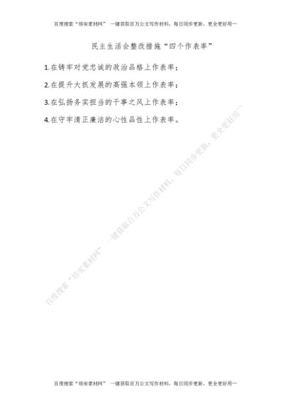 民主生活会整改措施“四个作表率”[更多资源请百度搜索“培实素材网”]