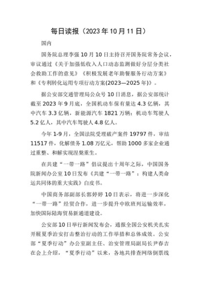 每日读报(2023年10月11日)[更多资源请百度搜索“培实素材网”]