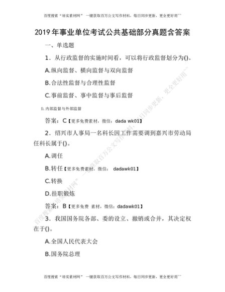 2019年事业单位考试公共基础部分真题含答案[更多资源请百度搜索“培实素材网”]