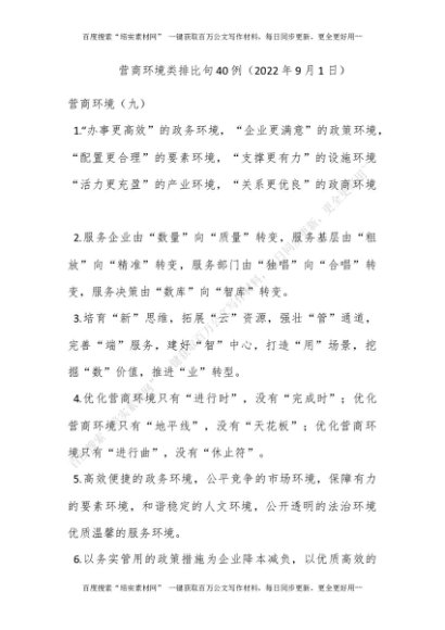 营商环境类排比句40例(2022年9月1日)[更多资源请百度搜索“培实素材网”]