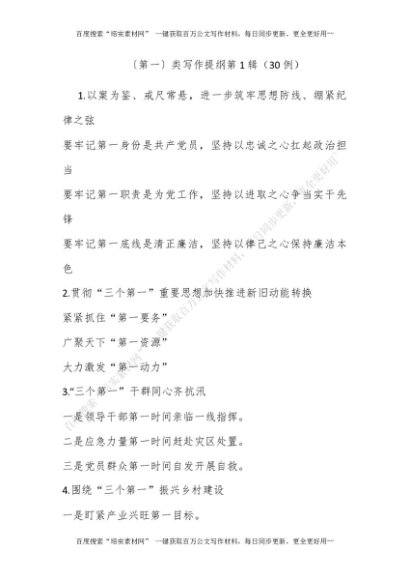 〔第一〕类写作提纲第1辑(30例)[更多资源请百度搜索“培实素材网”]