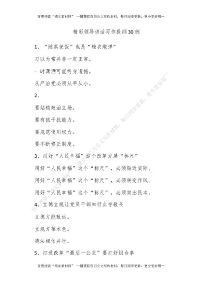 精彩领导讲话写作提纲30例_1[更多资源请百度搜索“培实素材网”]