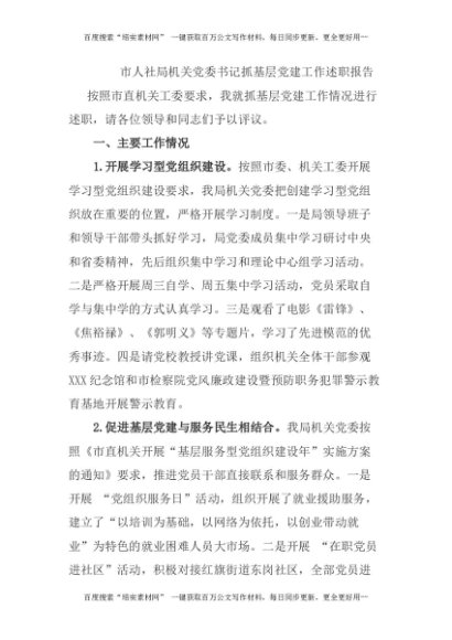 20180429【工作汇报类】市人社局机关党委书记抓基层党建工作述职报告[更多资源请百度搜索“培实素材网”]