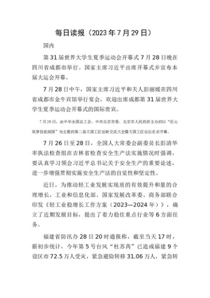 每日读报(2023年7月29[更多资源请百度搜索“培实素材网”]