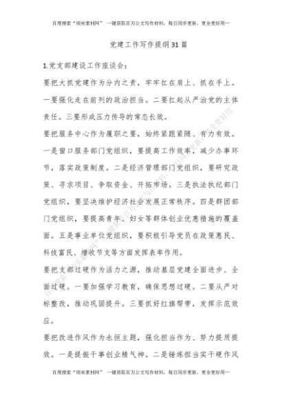 党建工作写作提纲31篇[更多资源请百度搜索“培实素材网”]