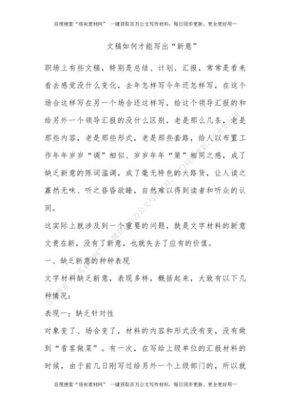 文稿如何才能写出“新意”[更多资源请百度搜索“培实素材网”]