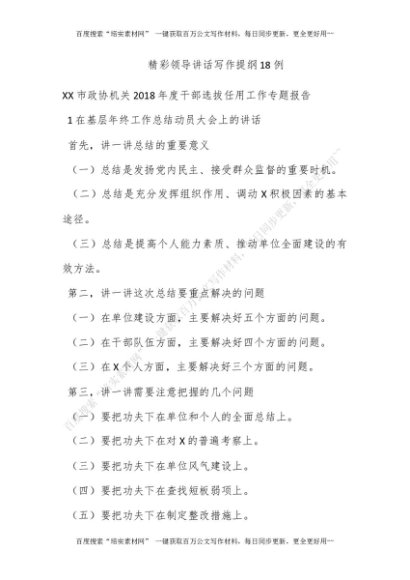 精彩领导讲话写作提纲18例[更多资源请百度搜索“培实素材网”]