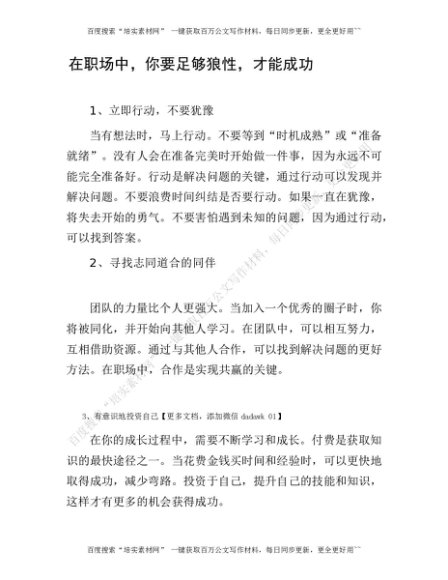 在职场中,你要足够狼性,才能成功 [更多资源请百度搜索“培实素材网”]
