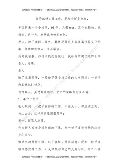 领导越级安排工作,是机会还是危机?[更多资源请百度搜索“培实素材网”]