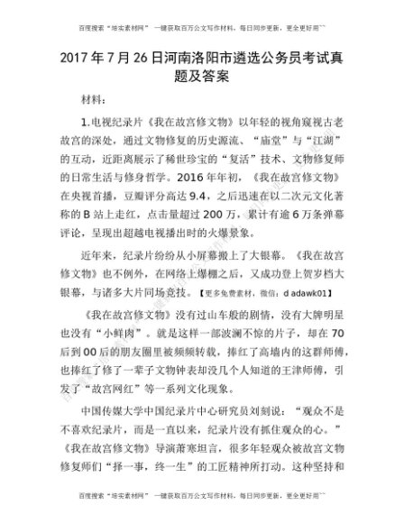 2017年7月26日河南洛阳市遴选公务员考试真题及答案[更多资源请百度搜索“培实素材网”]