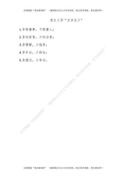 党办工作“五多五少”[更多资源请百度搜索“培实素材网”]